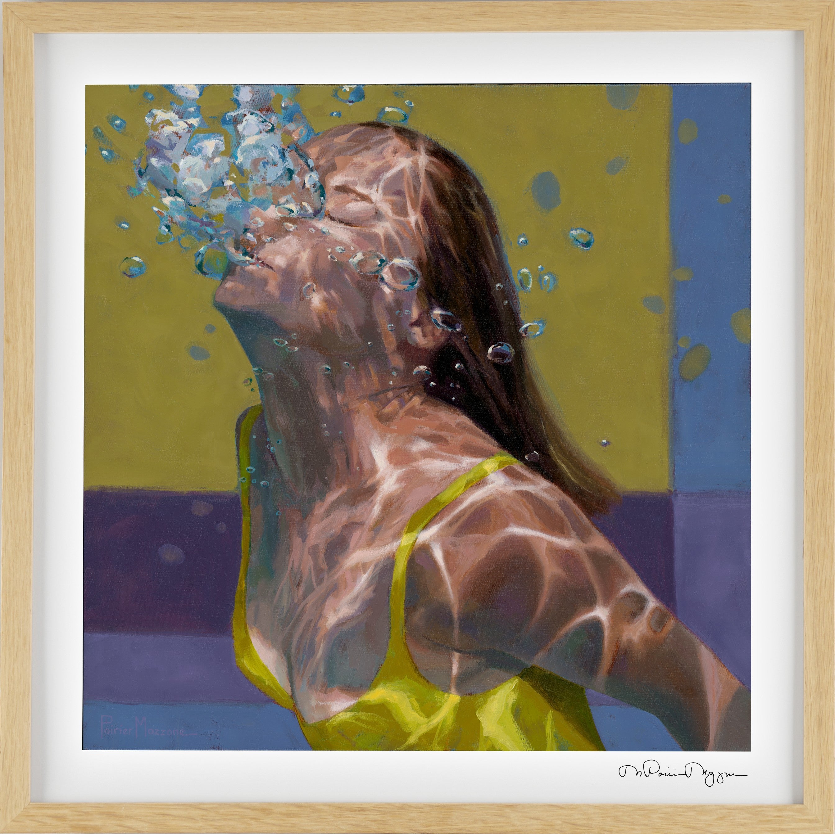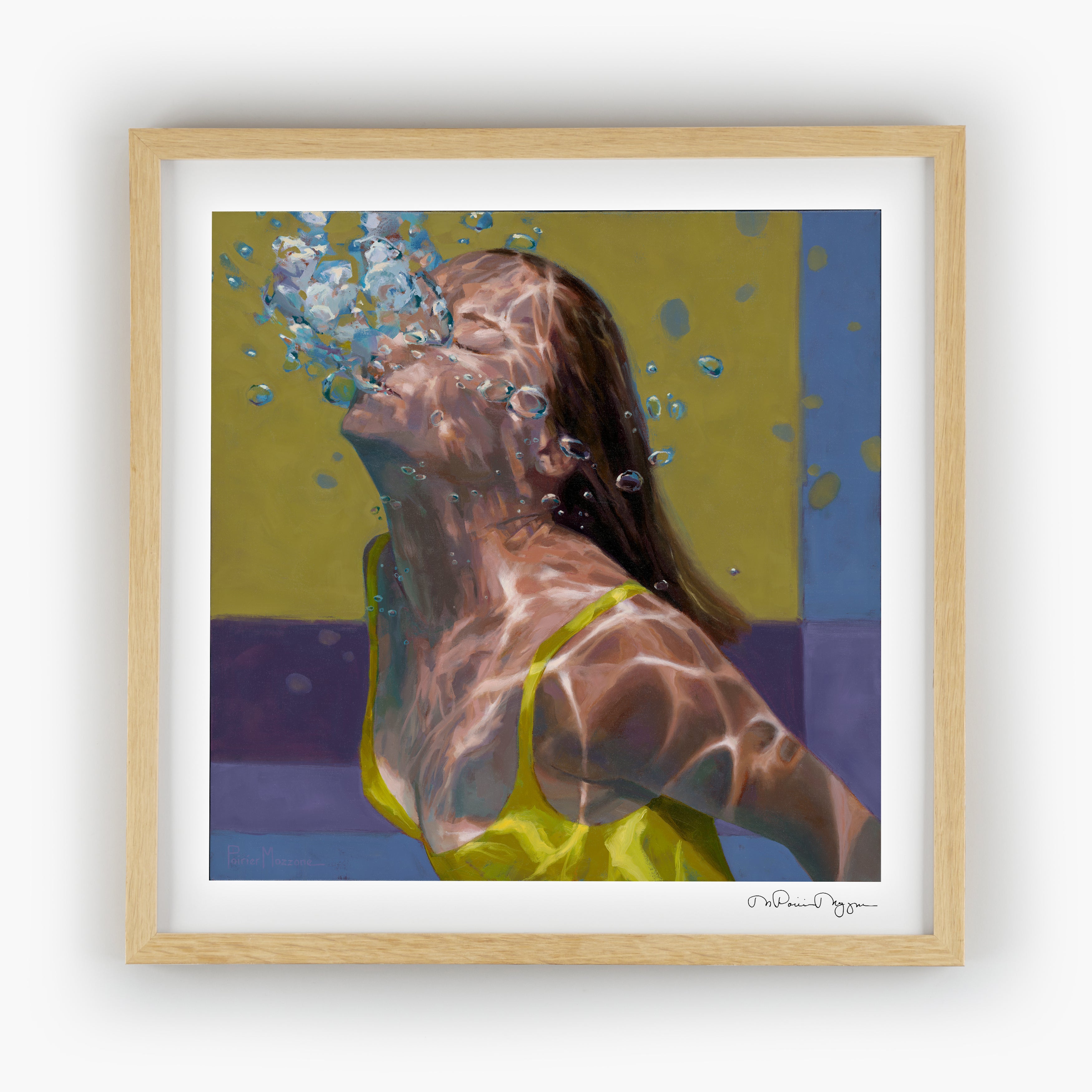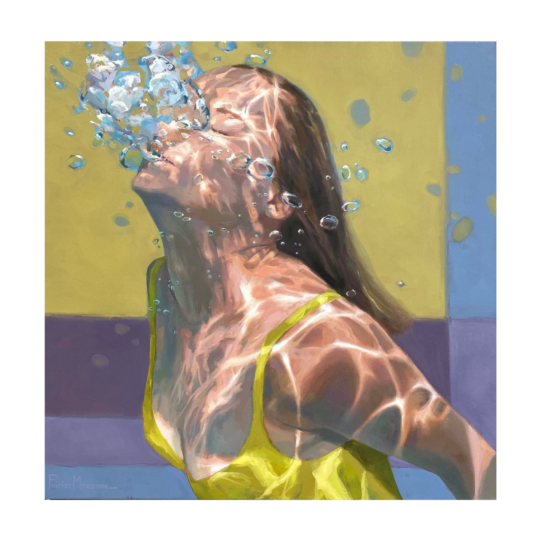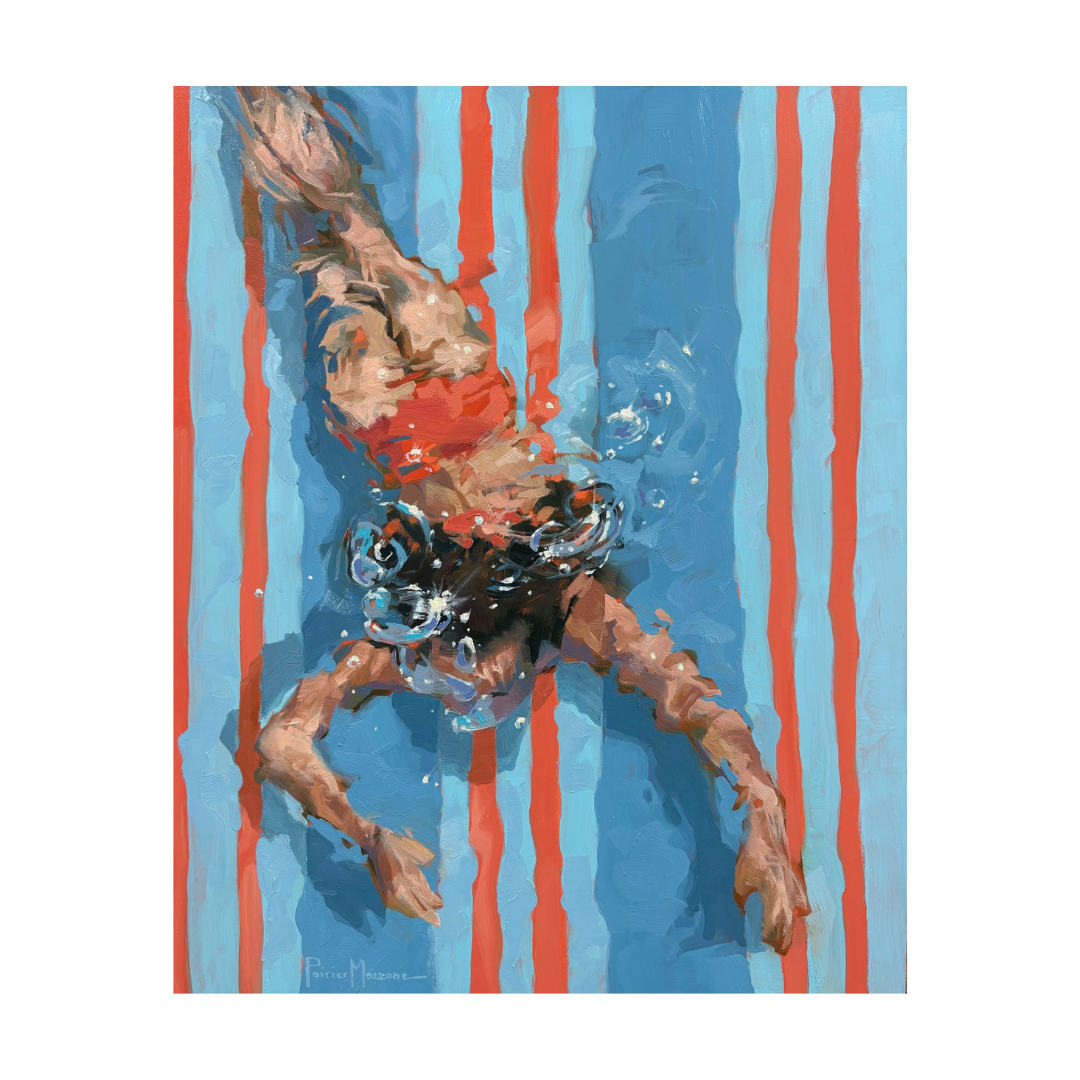These images demonstrate my recent exploration of simplifying form and planes of color to contrast with the figure. How far can I push reality and still have it read like water? You decide.