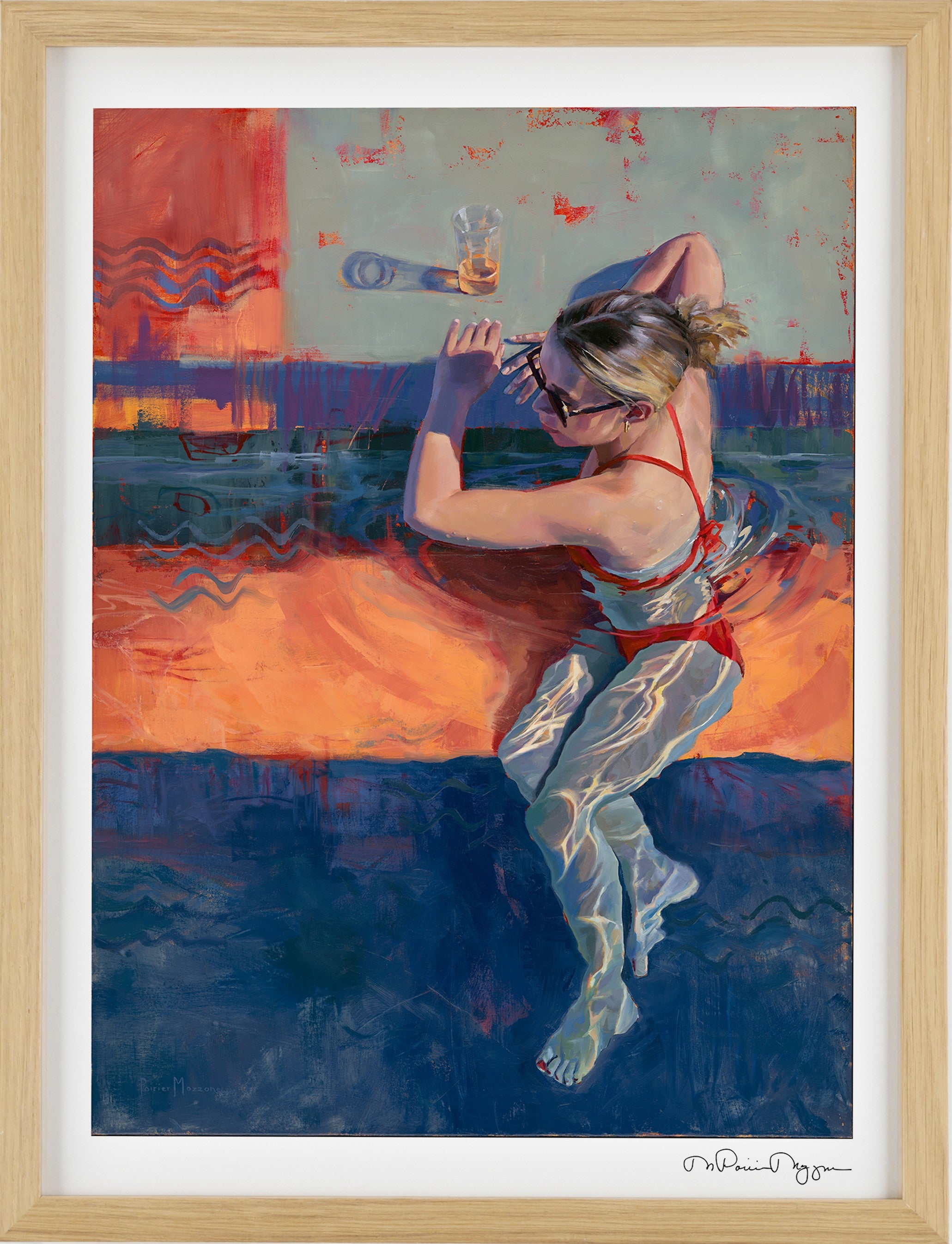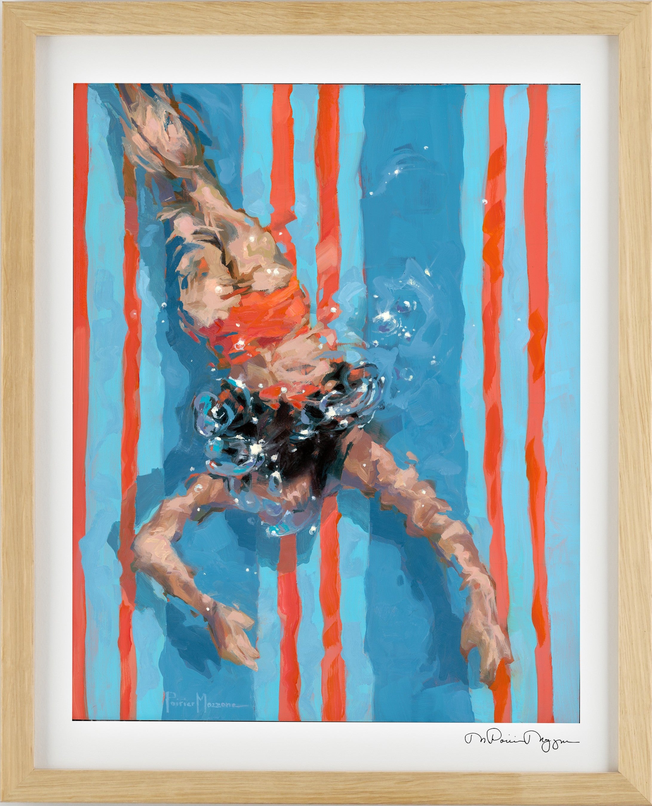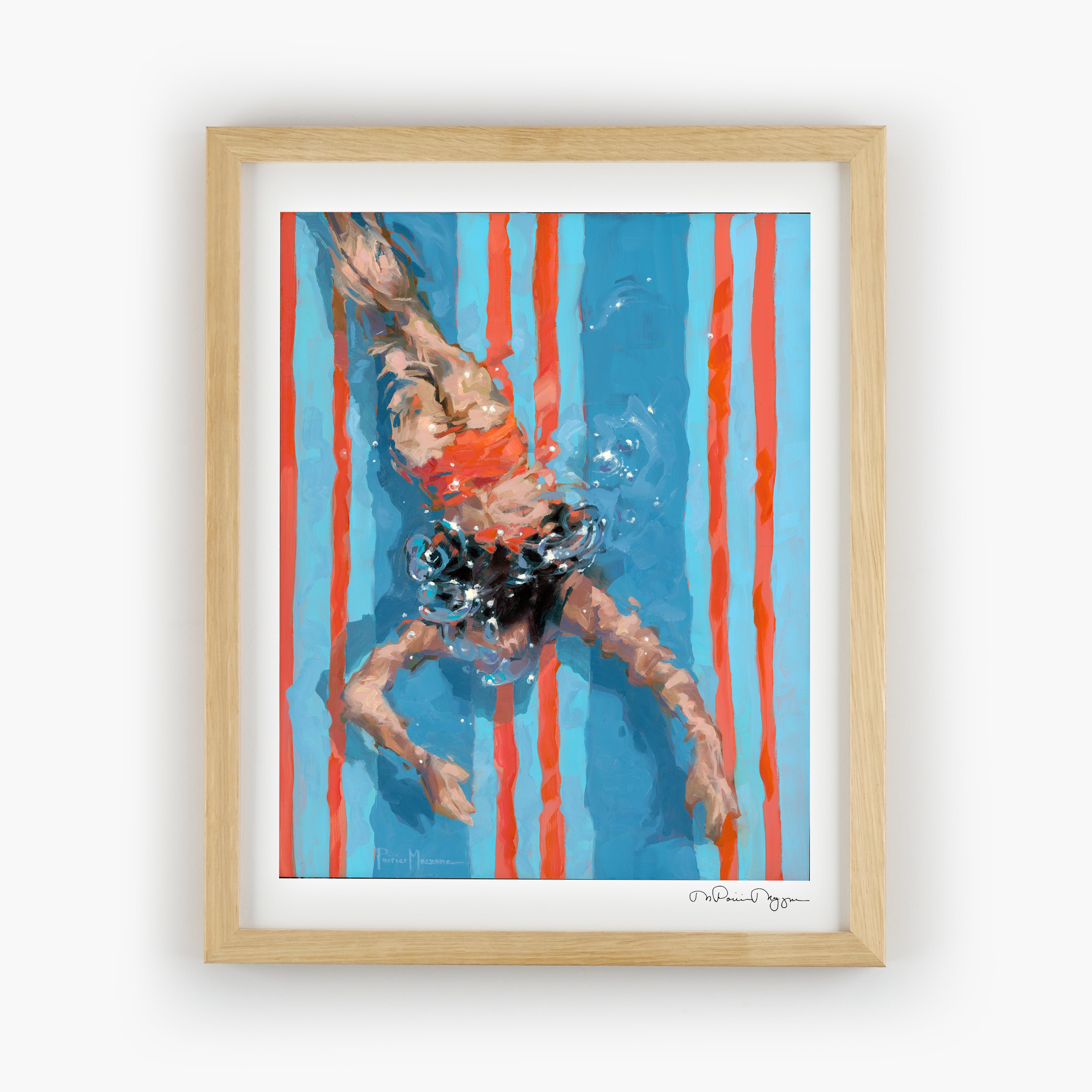 These images demonstrate my recent exploration of simplifying form and planes of color to contrast with the figure. How far can I push reality and still have it read like water? You decide.
